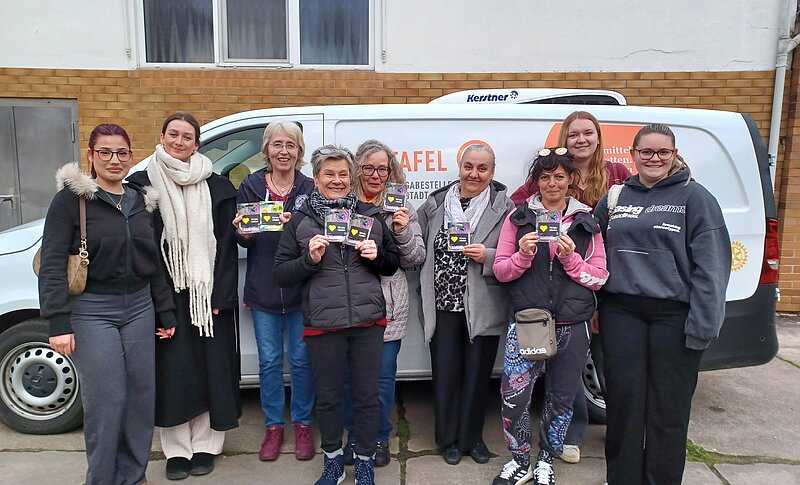 Freudige Überraschung der Helferinnen und Helfer der Tafel Bürstadt: Fünf Schülerinnen des zwölften Jahrgangs der Karl Kübel Schule aus Bensheim – Zoe Krebs, Selina Rothermel, Ilayda Cavuldak, Nele Szallis und Eva Leiendecker – hatten für die Tafel in Bürstadt Lebensmittelgutscheine im Wert von 700 Euro mit dabei.